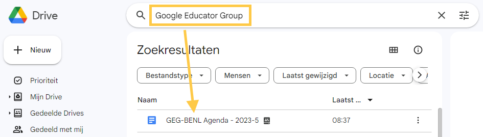Als je nu zoekt naar deze beschrijving via de zoekbalk van Google Drive vind je onmiddellijk je bestand terug.